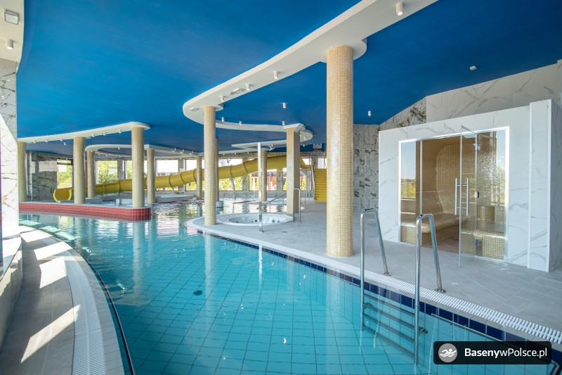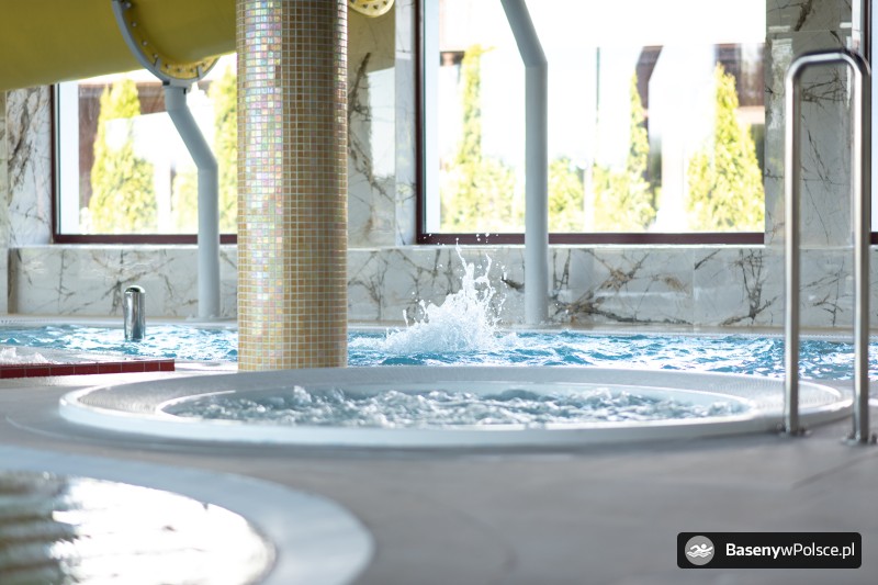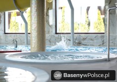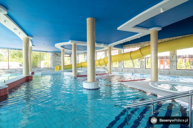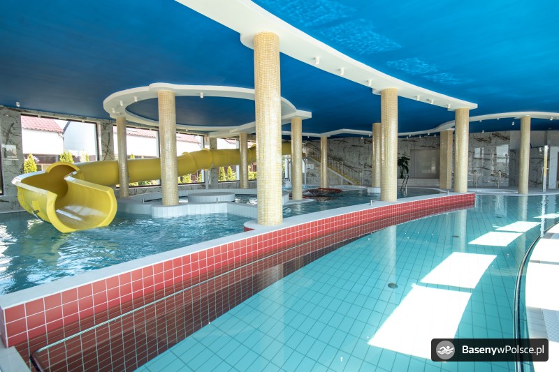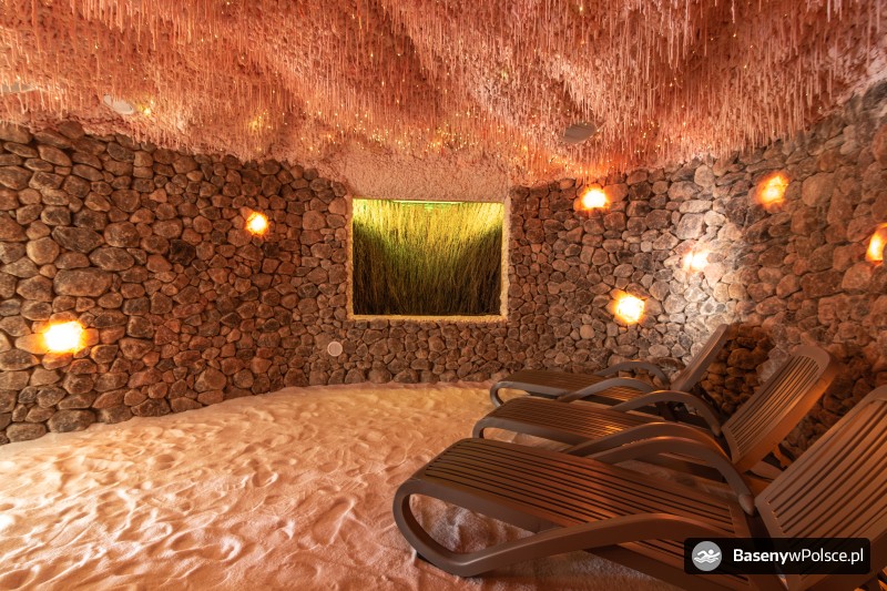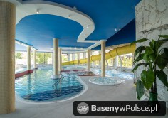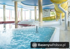 Do Państwa dyspozycji jest: park wodny z basenem rekreacyjnym z gejzerami wodnymi, rwącą rzeką, jacuzzi solankowym, leżankami wodnymi ,brodzikiem z fontanną wodną, 20-metrowa zjeżdżalnia wodna i sauna parowa i grota solna.