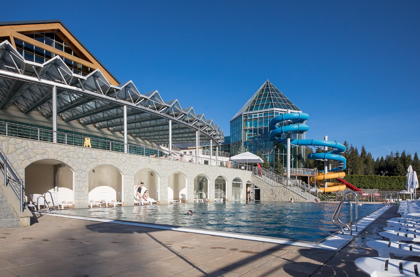 Termy BUKOVINA to 20 basenów wewnętrznych i zewnętrznych, strefa saun, zajęcia z nurkowania i aquaaerobiku, strefa dzieci i młodzieży ze zjeżdżalniami, brodzikami i siatką do wspinaczki wodnej oraz wiele innych atrakcji.